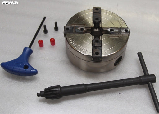 Talon 4 jaw scroll chuck body only includes:   - Key.  - 1" RH Jumbo Screw.  - 3mm & 4mm Hex Key.For lathes with 16" swing or less.Fits almost ...