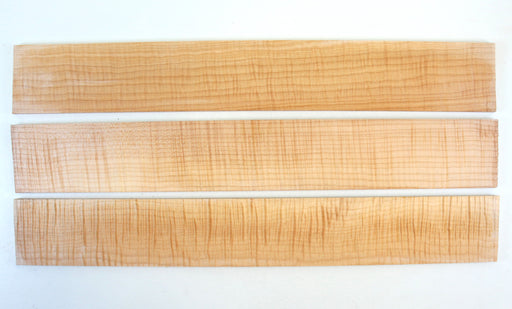 3 Big Leaf Maple (acer macrophyllum) fingerboards.Size: 23" x 3.2" x .30"(58.5cm x 8.2 cm x 7.7mm) minimumPremium flame figure.Thickness planed top...