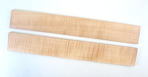 2 Big Leaf Maple (acer macrophyllum) fingerboards.Size: 23" x 3.1" x .38"(58.5cm x 8cm x 9.6mm)minimum.Premium flame figure.Thickness planed top an...